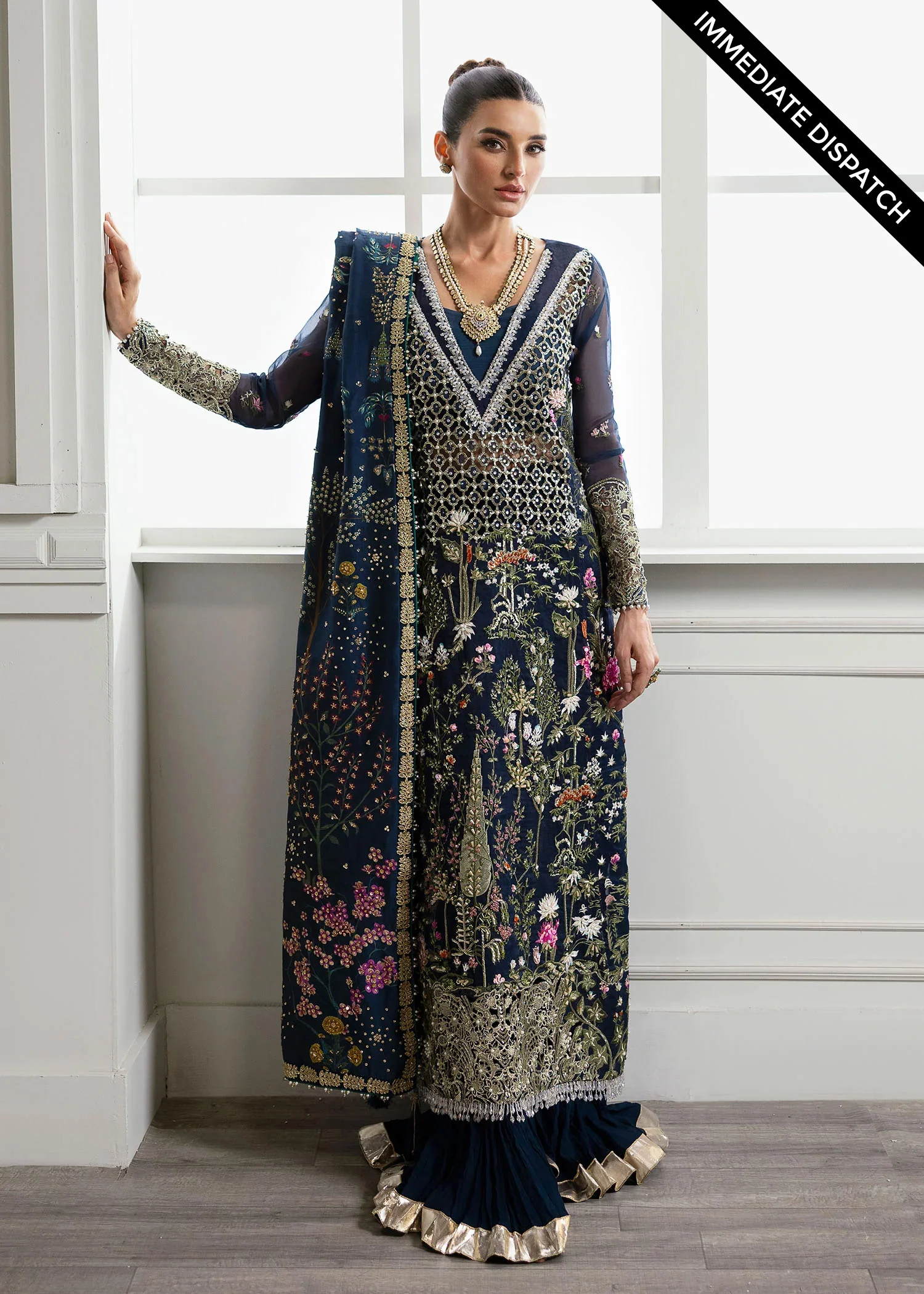 - 1 Ghaara Embroidered And Ada Worked Front On Organza