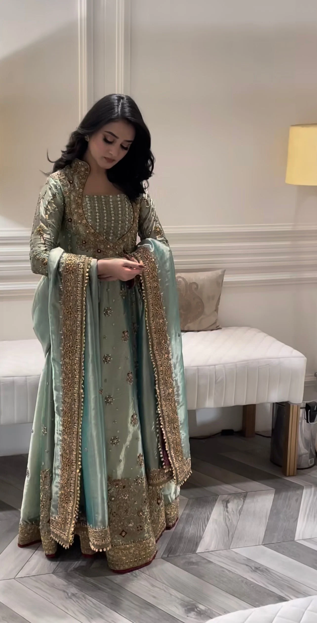 Each detail is carefully hand-embellished to create a heavily ornate, graceful look that radiates sophistication. The rich texture, premium finishing, and statement design make Meerub an ideal choice for wedding events, engagements, festive celebrations, and formal gatherings. Perfect for wedding guests, bridesmaids, and party wear, this designer-inspired outfit delivers a high-end look with exceptional craftsmanship.