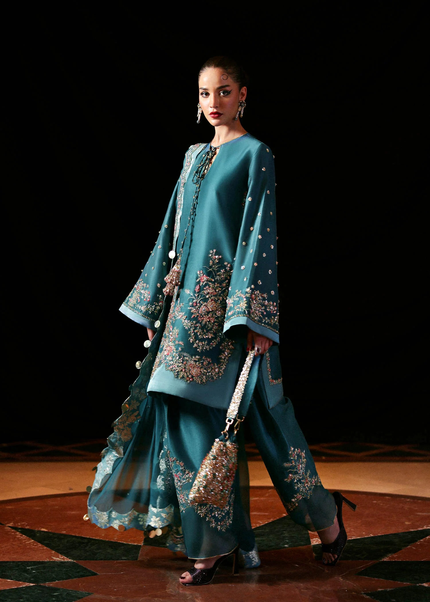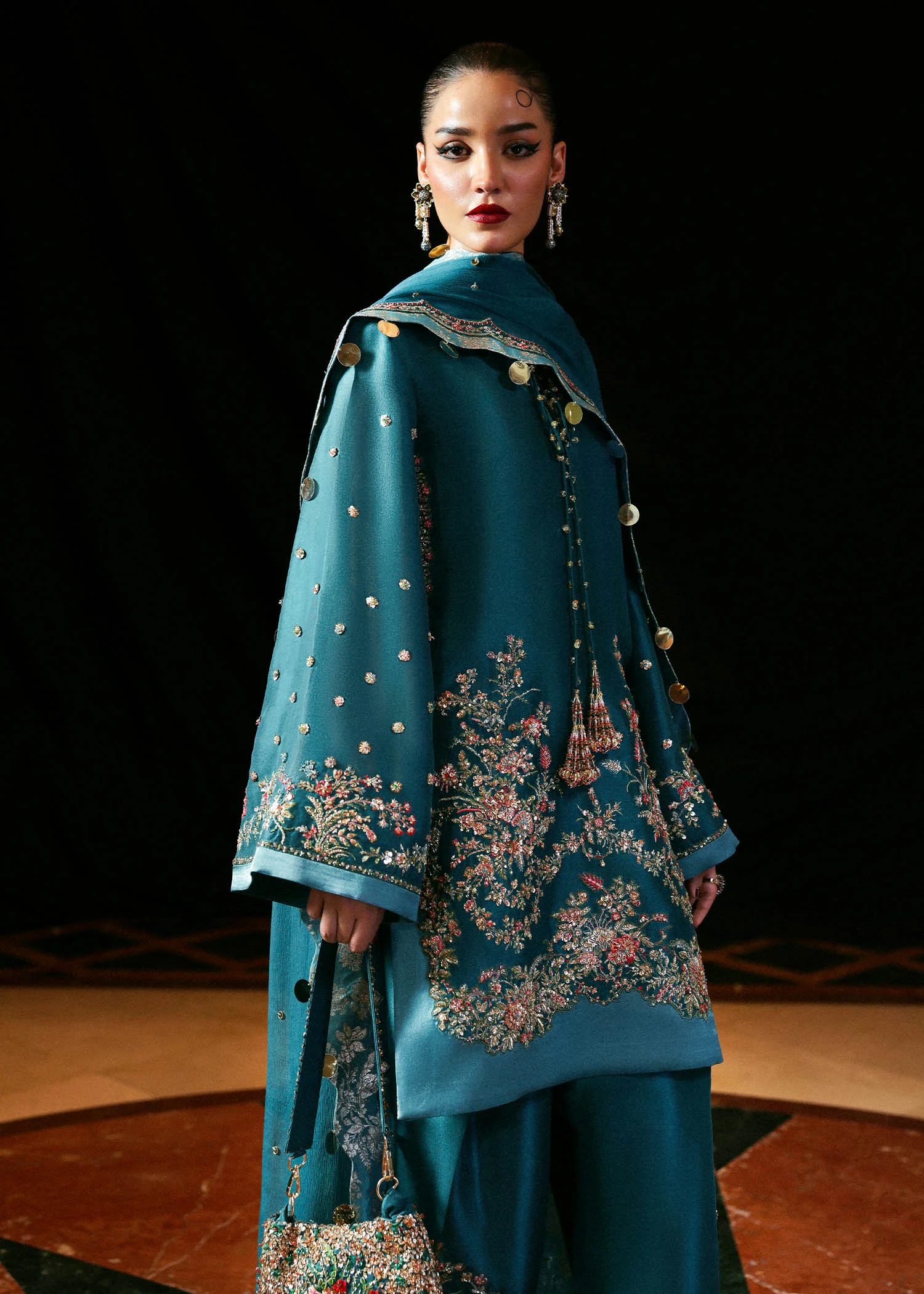 The graceful shirt is paired with beautifully coordinated trousers and a luxurious dupatta—crafted to deliver a polished, camera-ready finish. From its modern color palette to its intricate handwork, Verta is perfect for festive evenings, formal weddings, and high-profile celebrations.