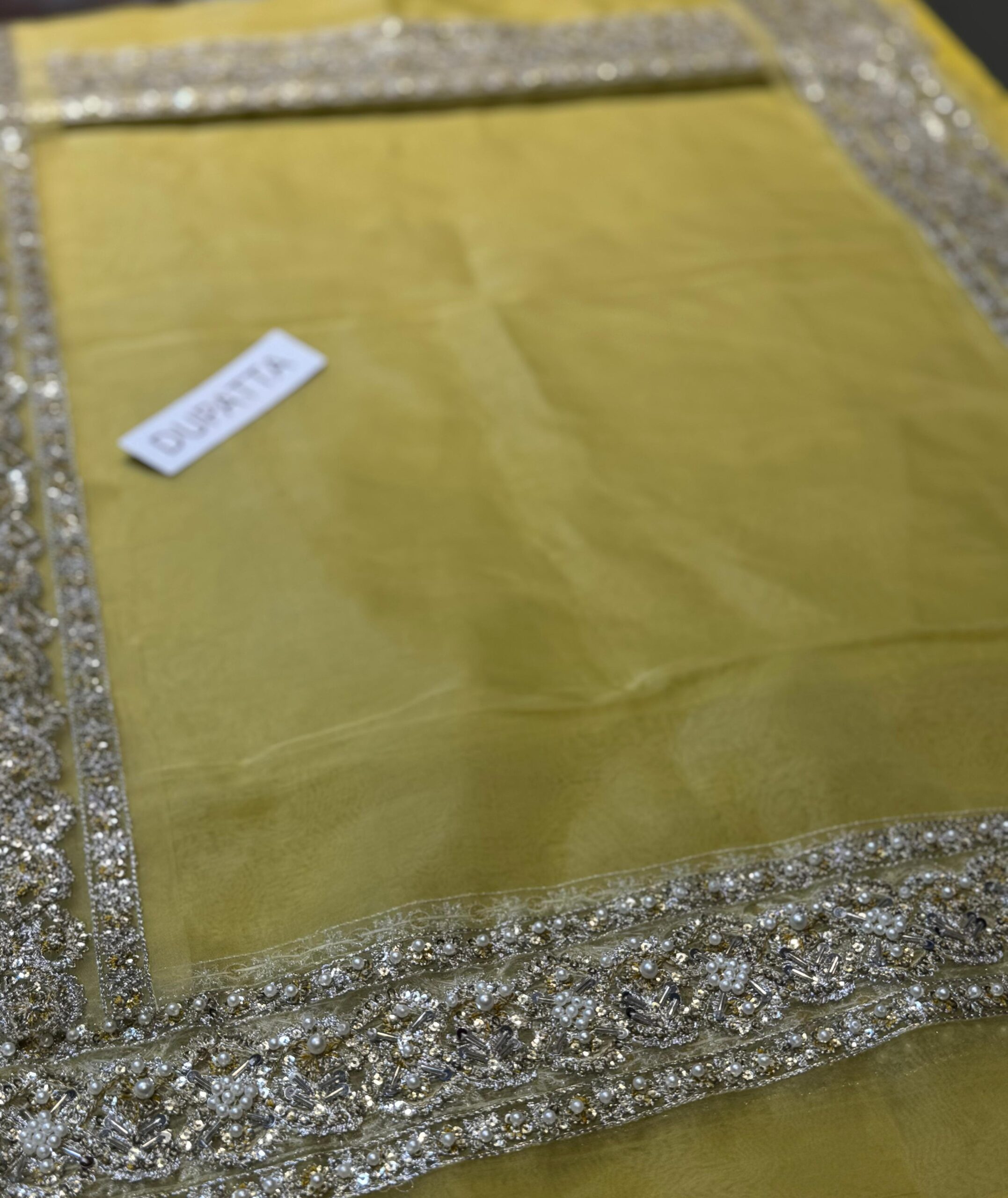 Unveil your bold and elegant style with Hussain Rehar Zesty, a statement designer outfit that radiates sophistication and modern charm. Expertly crafted with luxurious fabric and adorned with delicate embroidery, this ensemble captures the essence of contemporary fashion while staying true to traditional roots. Its striking hues and flawless detailing make it an ideal choice for weddings, festive occasions, or high-end gatherings, ensuring you stand out with a touch of effortless grace. This silhouette brings a modern charm to your wardrobes with its pastel lime yellow color, composed with cross stich floral motifs all over and with distinctive daman borders. Further it features velvet palazzo with color block embellished border and with net dupatta composed with pearl spray and with heavy embellished four side borders.