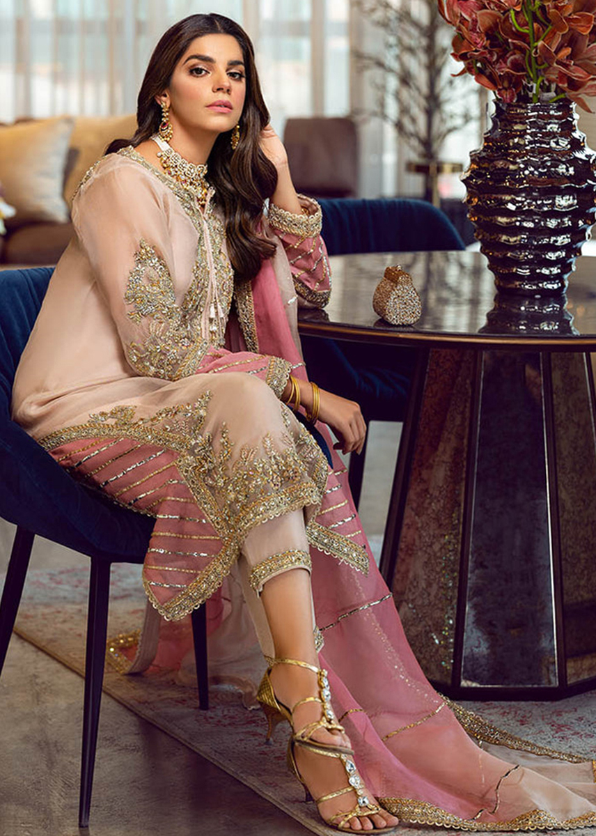 Step into the world of luxury with the Sara Rohale Asghar Peach Nouveau outfit – a masterpiece from the designer’s premium collection. This stunning ensemble features soft peach hues adorned with delicate embroidery, intricate threadwork, and fine detailing that reflects timeless elegance. Perfect for weddings, festive events, and formal gatherings, Peach Nouveau combines traditional craftsmanship with a modern aesthetic, making it a must-have for any fashion-forward wardrobe.